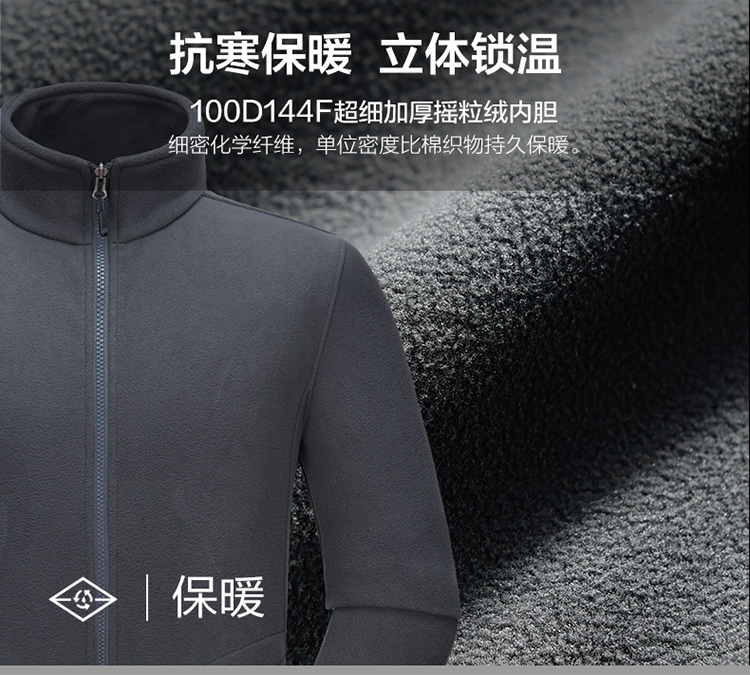 面料采用專業防水面料,選用克重高達300g的抓絨面料。加厚搖粒絨內膽,衣服雙側口袋,滿足不同身材,不松不緊,穿著舒適。接縫全壓膠,防水透氣達到專業級別;